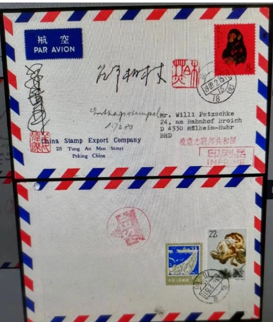 “金猴”首日实寄封拍出6万元 日期:2023-12-04 来源:周凤迟 中国嘉德2023秋季拍卖会日前在京落幕,其中一枚T46“庚申猴”中国邮票公司首日实寄封拍出63250元。 T46“庚申猴”中国邮票公司首日实寄封为中国邮票公司国际公函封,正面贴T46“庚申猴”邮票,背面贴特60(3-3)、普18邮票5分各一枚,销北京(18支)2月15日首日日戳,旁盖中国邮票公司“CSEC”红色出口章,有邵柏林、姜伟杰签名并盖印章。 中国邮票公司国际公函封首日实寄封极为少见。
