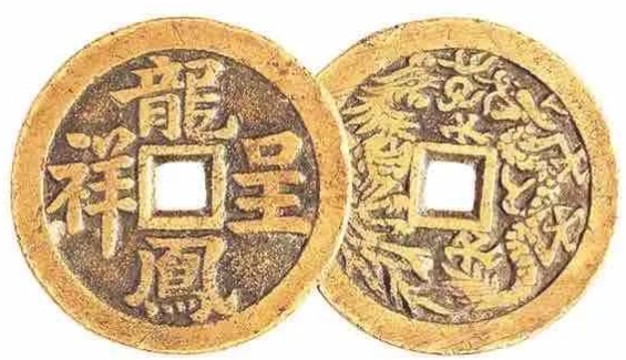这是一枚明代“龙凤呈祥”背龙凤花钱,钱径4厘米。一直以来,人们对于龙凤呈祥的吉语早已耳熟能详,但要提及“龙凤呈祥”的故事来由,或许还有一些人不清楚。