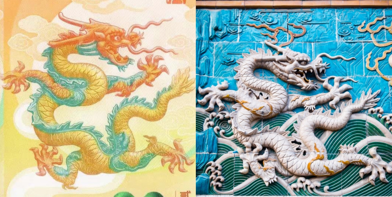 而2024龙年纪念钞图案来源于北海九龙壁,千禧龙钞图案来源于故宫九龙壁。