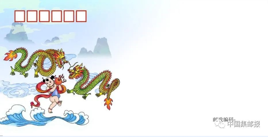 此次启用的“龙腾四海”邮资机宣传戳和美术纪念封由邮资机设计师丁麟轩担纲设计,图案延续了2017年丁酉鸡年以来一贯的年画风格,邮资机宣传戳由童子和腾龙组成,机戳上,童子手持宝珠,龙在天空翱翔、嬉戏宝珠,既轻盈灵动,又体现了中国传统文化的典雅之美。