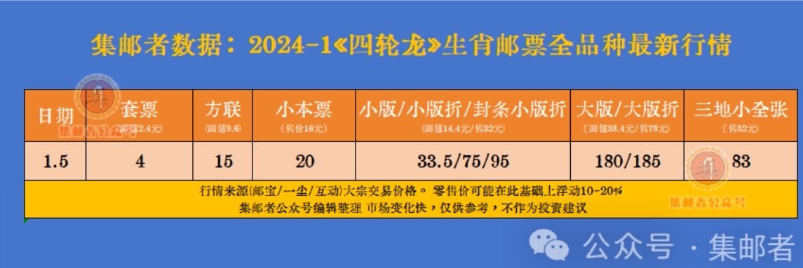 集邮者讯(JiCang.vip),今天是四轮龙生肖邮票首发的日子,市场最新行情全部出炉,对于中签摇号的邮友来讲是好消息,全国多地首日摇号的大版折,小版折,三地小全张也到货了!
