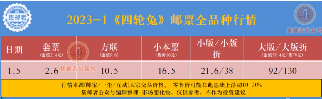 熟悉集邮者公号的邮友,知道,小集每年都会整理生肖邮票的行情走势,为了方便邮友们查看,也特别整理成了表格: