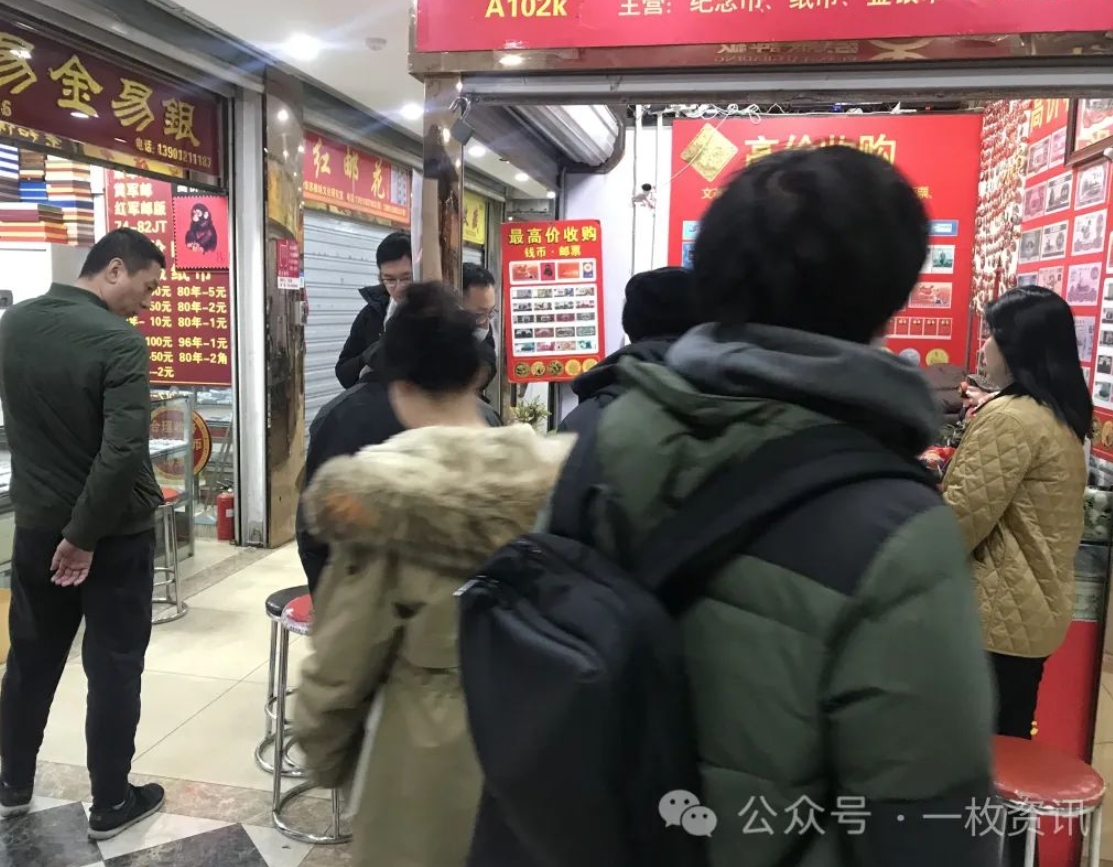 一位爱好者驻足在邮市一楼A2007柜台,龙钞以45元、龙币15元一枚的价格把龙钞龙币兑换给了商家,与商家聊了起来,称自己后面的一位幸运者兑换到了一组豹子号,说邮市这种场景已经多年未见了。