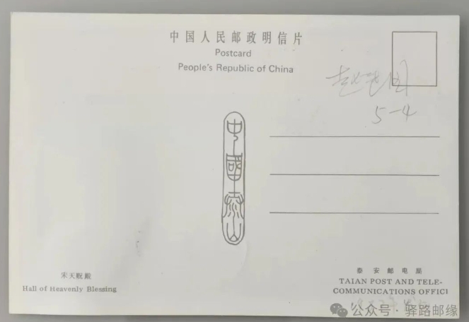 在贴好邮票之后,我又赶到3华里之外的泰山邮政支局,在我说明来意之后,一个和邮票一样美的邮政姑娘,一挥手,“啪”、“啪”、“啪”!我的心还来不及颤抖,一枚枚饱满清晰的泰山支局1号邮戳带着油墨香味盖在了票和片之间,它像手臂挽起了票和片,形成了一个完美的带有邮政意义的整体,好漂亮啊!我惊讶的嘴合不上了,姑娘笑了,问我,“你想说什么”,我的脸顿时红了,我说:“我想说谢谢你们”,其实,当时我想说的是盖戳时要注意,一定要清晰完整,等等。