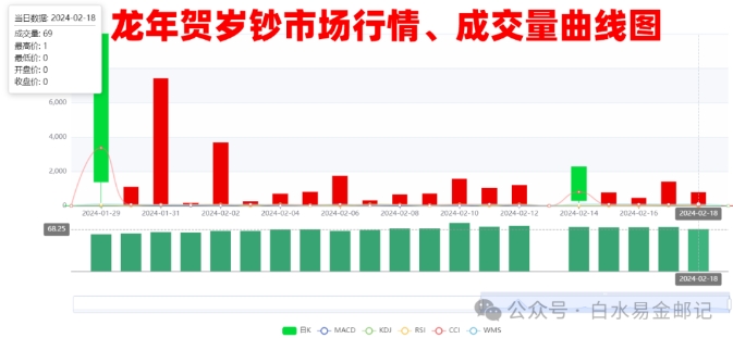整体来看春节后的龙年邮票、钱币热点题材品种依然是拉升状态,但龙年常规邮票品种小本、套票、小版都在回落,龙年邮票大版虽然在节后拉回到145元,但没能拉动2023年邮票全年大版册上升,目前2023年全年邮票版票总价最终跌破面值。究其原因2024年收藏市场对比往年增发了龙年贺岁钞,等于挤占了部分收藏资金,加上邮票近两年依靠发行量少且“新奇特”的“特供邮品”为主,结合金融炒作方式,关注点已经转移,常规产品已成“鸡肋”,2022年、2023年的全年邮票大版总价跌破面值也是常理之中,这个当年的神坛产品也是常规邮品落寞剪影。