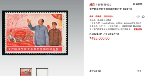 这枚“全面胜利”成交于本年的1月31日,成交价格达到49.5万。