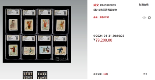 后面还有一套纪94B梅兰芳,全套均为源泰评级VF95分,其成交价格为7.92万元。