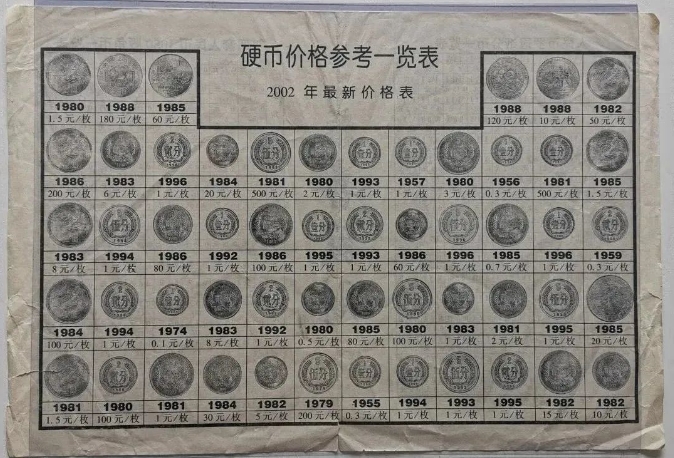 他们有多值钱,从2002年这张硬币回收价格表中也能窥探一二。