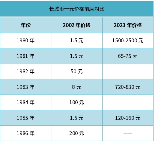 20年前能有人回收这三个年份就已经很罕见了,更何况这么多年过去,全套长城币上涨了不止几十倍,小编给大家整理了个表格,更方便对比。