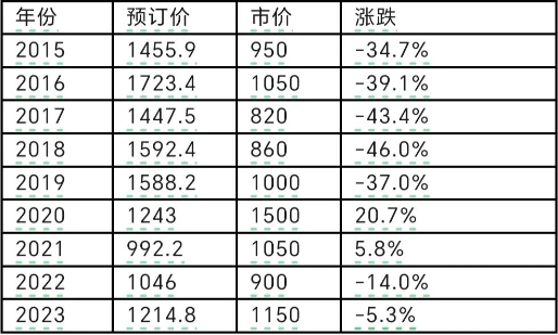 最近,有老玩家和我抱怨,2015年至今的大版册除了2020-2021有小幅度上涨,其他年份全军覆没,还特意给我看了幅图,如下。