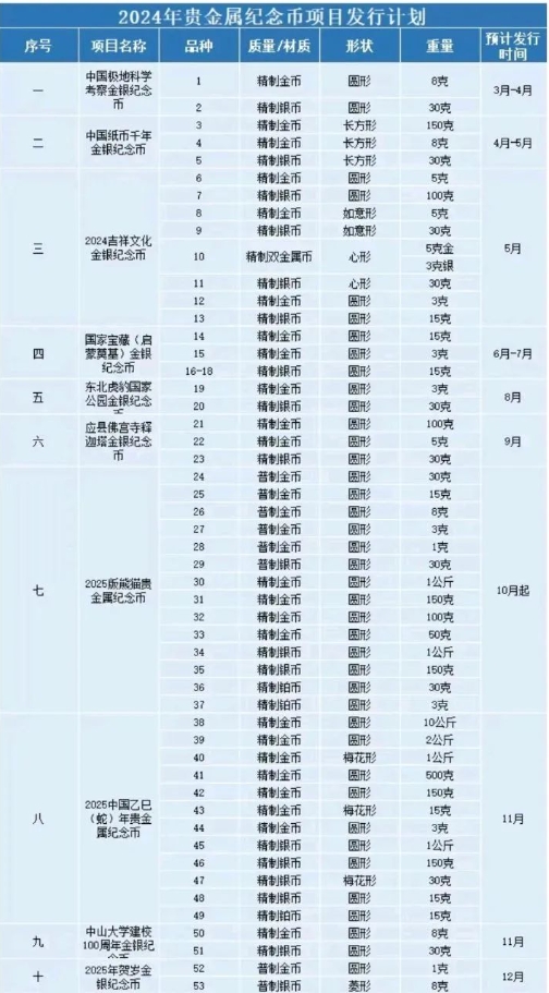 消息:网传2024金银币预计发行时间→