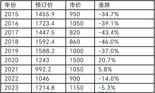 最近,有老玩家和我抱怨,2015年至今的大版册除了2020-2021有小幅度上涨,其他年份全军覆没,还特意给我看了幅图,如下。