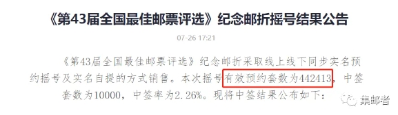而有效预约量,较2023年佳邮对比,并没有减少,总体是增加的,43届佳邮张报名:442413人次,44届佳邮张为473998人次!今年中签率的上升,是因为较2023年增加了5000个名额,44届佳邮张中签指标在15000个。