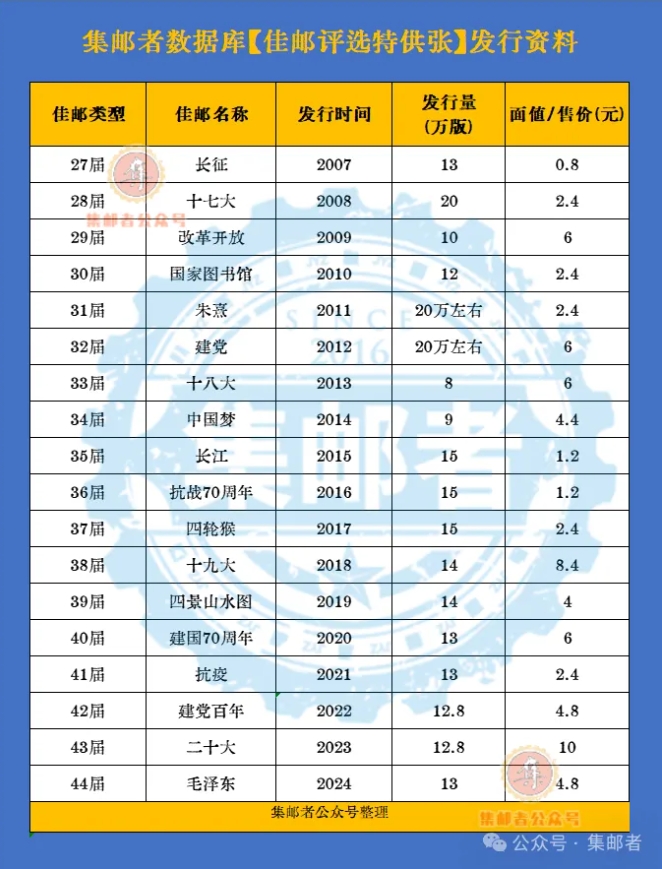 同时,秦岭长卷和44届佳邮张的发行量公布,分别为:12万和13万枚!