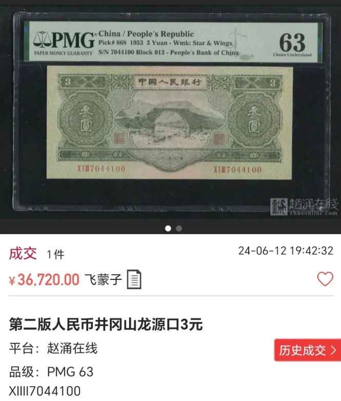 因为本身发行量就少,存世量更为稀少,这使得其具有较高的收藏价值。比如,下面这样的品相苏三元卖家都报价要9000元,可见稀缺程度了。