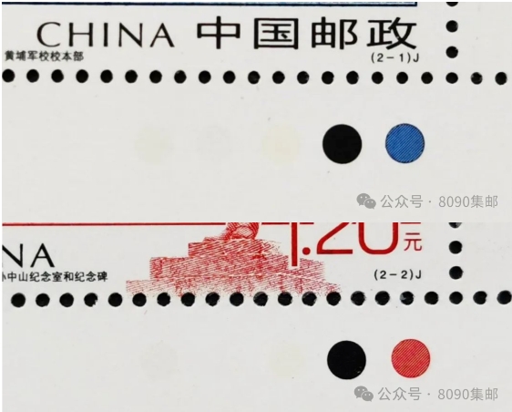 因为这次的“黄埔军校”邮票其采用雕刻图案作为主图,这次雕刻色正式出现在版式一的色标之上了。同时也希望未来无论如“黄埔百年”《货郎图》“科学家”这类以雕刻线条为主的邮票;还是说以色彩为主,雕刻线条为辅的邮票,其雕刻色都应该出现在邮票版式一之上。