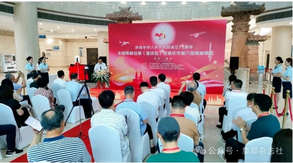 6月28日,庆祝中华人民共和国成立75周年全国集邮巡展(重庆站)暨重庆市第六届集邮展览在重庆中国三峡博物馆开幕。开幕式上,出席活动的部分嘉宾致辞并为《庆祝中华人民共和国成立75周年全国集邮巡展活动》纪念封揭幕。到场嘉宾共同为庆祝中华人民共和国成立75周年全国集邮巡展(重庆站)暨重庆市第六届集邮展览开幕剪彩。