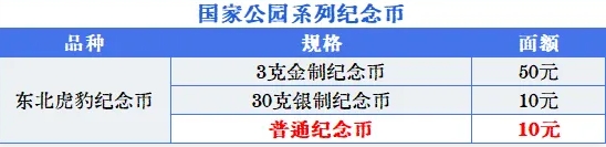 东北虎豹纪念币一共将发行3枚纪念币,1枚金币,1枚银币,1枚普通纪念币!