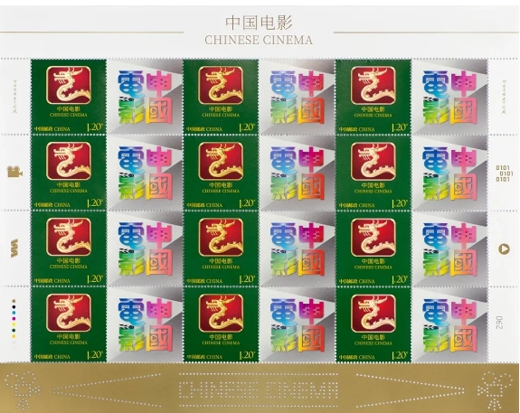 采用了个性化邮票的标准版式,一版12枚。边纸上增加了放映机、胶片、数字信号、播放器元素,涵盖了电影由拍到播的全过程,有点意思。