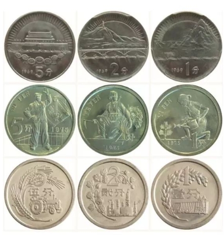 1969年至1975年之间,曾试铸一些分币呈样,图案极具时代特色,但最终未被国务院采用,遗憾!
