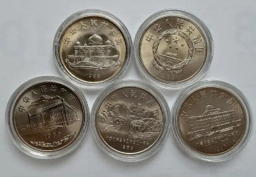 五大自治区纪念币系列,分别是1985年的西藏、新疆,1987年的内蒙古,1988年的宁夏和广西。每个设计图案都堪称经典,越看越有味道。