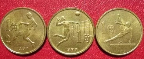 1987年,规模空前的第六届全国运动会在广州天河体育场隆重开幕。为了纪念此次运动会的召开,中国人民银行发行了六运会纪念币一套3枚,面值1角,发行量351万套。直径20mm,铜锌合金材质。