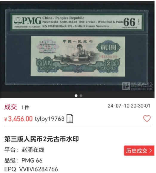 从拍品描述上看,和前面两张一样,全都是古币水印,只不过这枚是PMG高分币,66分!