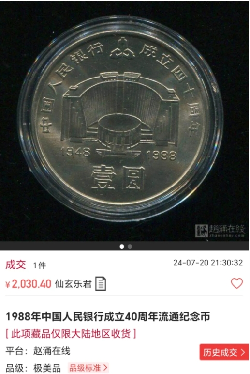 再比如下面这枚,赵涌平台上的拍卖成交品种,不是评级币但品相非常好,最终成交价在2030元!