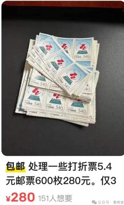 某"海鲜市场"上公然售卖假票,600枚5.4元的邮票,面值3240元,而卖家仅卖280元,还包邮!也就是不到面值的1折...这种太多了...群里邮友举报投诉,还有甚至写信,也不了了之了...确实有点心寒。
