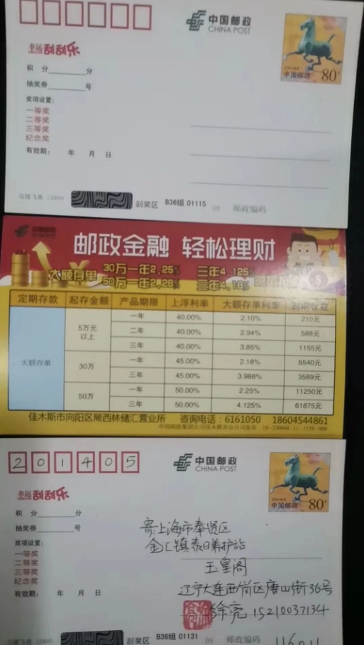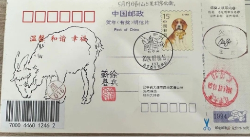 看完展览合影后,他自去邮局盖戳,跑水仙邮局、老虎滩邮局等等。待给我发来照片,我说都盖了戳,为何不干脆做点实寄?一语,问出一个许多年轻邮友头疼的问题——不敢实寄!寄出收不到。“闹钟”本人给家里寄过三次明信片,全部没收到。