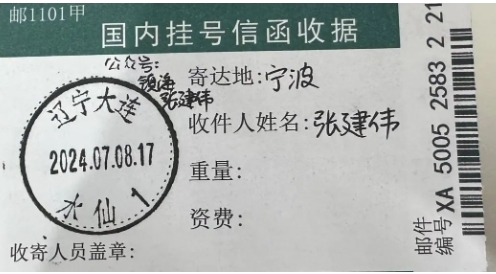 然后,去邮局给自己寄挂号信。买成品挂号信封即可,注意邮资,本地挂号380分,外地420分,累加120分倍数邮票。去大一些邮局操作,大邮局工作人员业务熟练。寄挂号信有回执,如果没有,管工作人员要,非常重要。