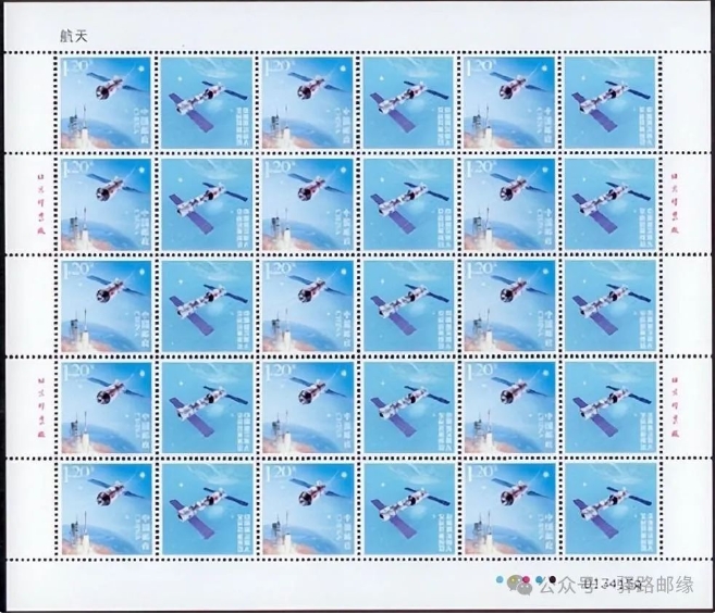 为纪念“天宫一号”与“神舟九号”成功实现手控交会对接,中国邮政于2012年6月25日发行《航天》个性化服务专用邮票,全套1枚,图名“航 天”