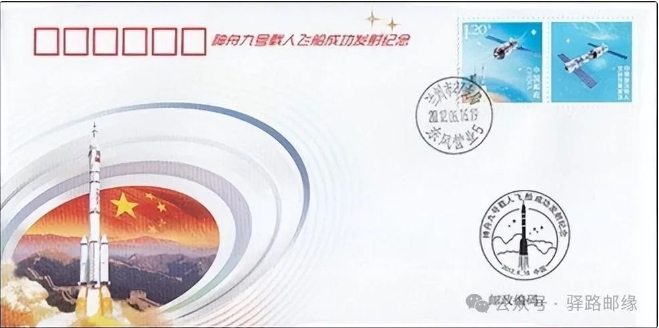 第1枚名为“神舟九号载人飞船成功发射纪念封”,编号:PFTN.HT-76(3-1)。正面有“神舟九号载人飞船成功发射纪念”字样,2012年6月16日发行。