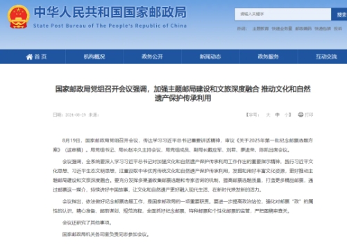 会议强调,全系统要深入学习习近平总书记对加强文化和自然遗产保护传承利用工作作出的重要指示精神,践行习近平文化思想、习近平生态文明思想,注重汲取中华优秀传统文化和自然遗产保护传承利用,发掘和用好丰富文化资源,更好推动主题邮局建设和文旅深度融合。要充分发挥多渠道收集邮票选题和专家咨询的机制,提高邮票选题质量,打造更多精品邮票,通过邮票这一媒介,持续讲好中国故事,让文化和自然遗产更好融入现代生活、在新时代焕发新的活力。