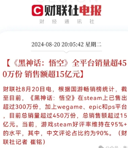 而财联社消息,目前全平台销售量已达450万份,销售额已超15亿元。