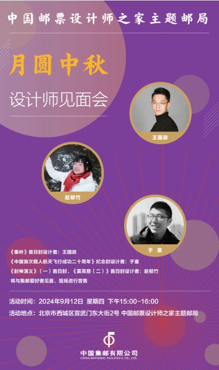 月圆中秋设计师见面会当皎洁的明月洒下清辉,中秋佳节的脚步渐近,我们诚挚邀请您共赴一场别具一格的中秋赏邮盛宴。