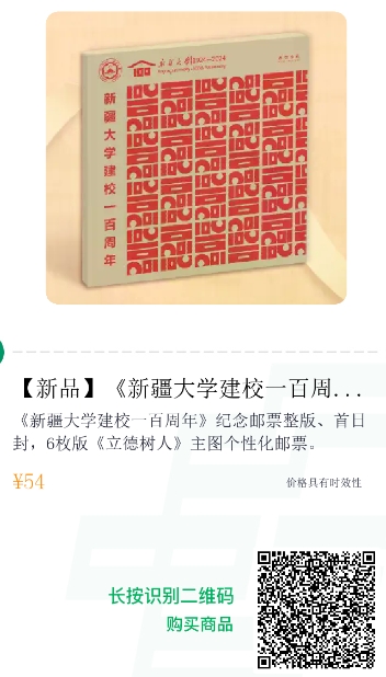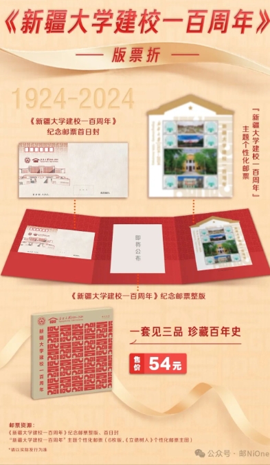 根据国家邮政局审定的2024年纪特邮票发行计划,中国邮政定于9月21日发行《新疆大学建校一百周年》纪念邮票一套一枚。