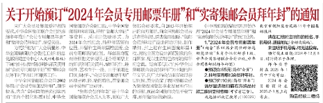 预订截止日期:2024年12月8日,过时将不予办理。拜年实寄封在2025年1月中下旬寄出。2024年会员册预计在2025年3月中旬寄出。