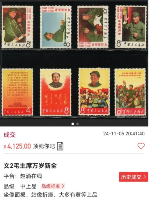 最近,一套文2票拍出了4125元,具体见图。