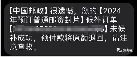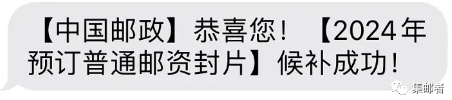 而还有人忘记2024年无论候补是否成功都会发短信的事了。还好互联网是有记忆的,小集找到当时推文的图片,可以看到无论是候补成功 or 未候补成功,中国邮政都有短信发送!