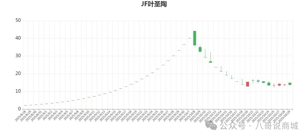 JF叶圣陶封,筹码锁定度高,后市可期。今天开盘价14.88元,最高价14.88元,最低价13.54元,收盘价13.8元平盘