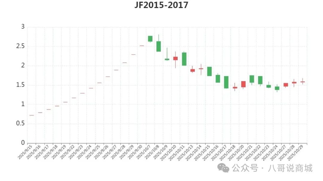 JF封15-17年单枚,开盘1.58元,最高1.68元,最低价1.52元,收盘价1.59元涨0.63%