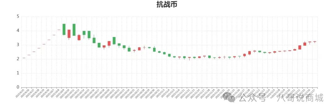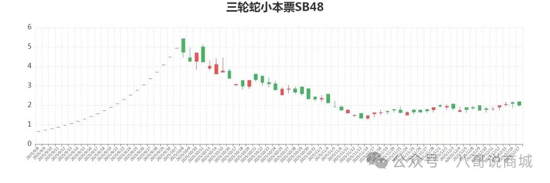 钱藏新商城在经历开盘之初的大涨和随后的长期调整之后,开始迎来第二波上涨潮。钱藏新商城第二波上涨潮的特点是潮头缓慢上涨,潮中加速上涨,潮尾疯狂大涨。现在只是潮头缓慢上涨阶段。在此阶段,大盘以进三退一的方式,推动大盘上的所有品种温和次第上涨。这种方式的上涨,如果以一个短周期观察,上涨非常明显。笔者以12月3日的最低价至12月16日的最高价作统计,来看上市品种的上涨幅度。12月3日的最低价与12月16日的最高价分别为:叶圣陶15.55元,25.25元;2024年邮票3.22元,4.22元;四轮生肖1.69元,2.14元;四轮马1.12元,1.64元;JF2015–2017年1.37元,1.49元;对撞机2.03元,2.84元;三轮蛇小本票1.74元,2.15元;抗战币2.39元,3.23元;世博币2.77元,3.76元。上述品种的普遍涨幅在百分之三四十左右,像叶圣陶的涨幅则接近百分之七十。 在这波上涨中,新上市的品种也赶上了好时候,如千岛湖小全张由上市价1.50元涨至12月16日的28.20元,涨幅高达19倍,是继叶圣陶之后的又一个高涨幅品种。 钱藏新商城的第二波上涨已经开始,投资者要勇立潮头,不要错过这挣钱的机会。因此,加大投资是投资者赚取更大利润的不二选择。