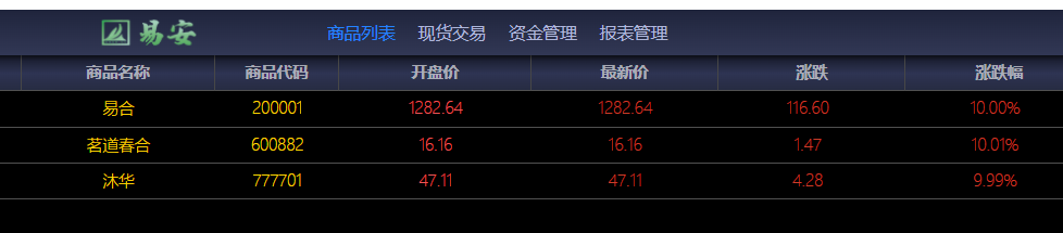 上图三支品种是驰名投资市场的圆顺系奶瓶小王总运作品种,熟悉奶瓶做盘风格的都知道,敢于持续带量爆拉,敢于做出超级高度,参与者能真的大赚特赚,邮币卡时代他运作出数十支百倍千倍的暴富品种,黔中时代依旧是独一无二的市场第一主力,当前奶瓶进驻易安,第一票易合天天给机会上车,天天给上车者10%的收益红包,易合已经大幅锁仓、持续暴力拉升、打造市场标杆第一票