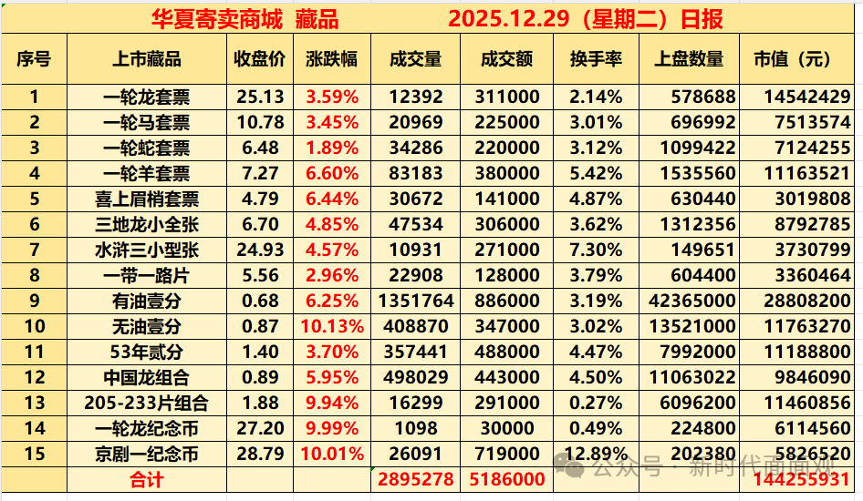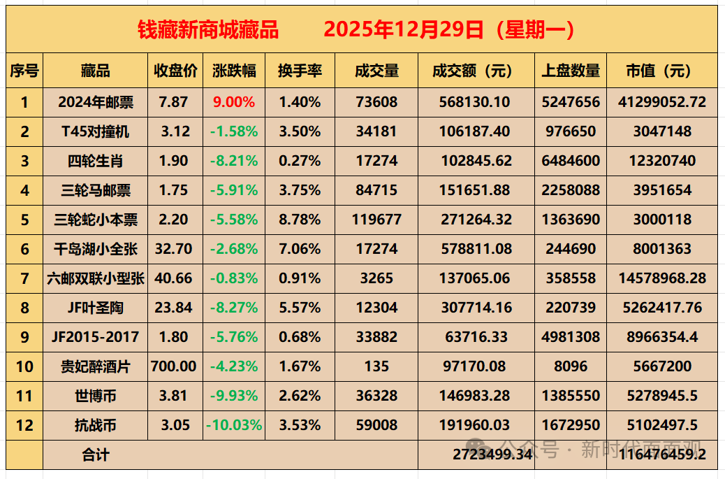 1.2024今日继续缩量大涨。全天主力出手较少,在涨停附近多空攻防一整天。今日该票站上4000万市值。2.千岛湖再创新高。千岛湖今日低开高走,创出新高,收盘回落略跌。其他个票多数回调。3.新开户福利来了。2025年12月25日至2026年1月31日期间新注册用户,充值≥1000元,且累计成交金额≥ 10000元;可领取价值50元抢购权礼包(每周统计一次并发放,活动期间注册的新用户仅限参与一次);符合条件的会员登录钱藏新商城-我的-我的福利-点击使用。开户选择6699号段(开户链接附后)的朋友可以叠加获得30元现金红包。
