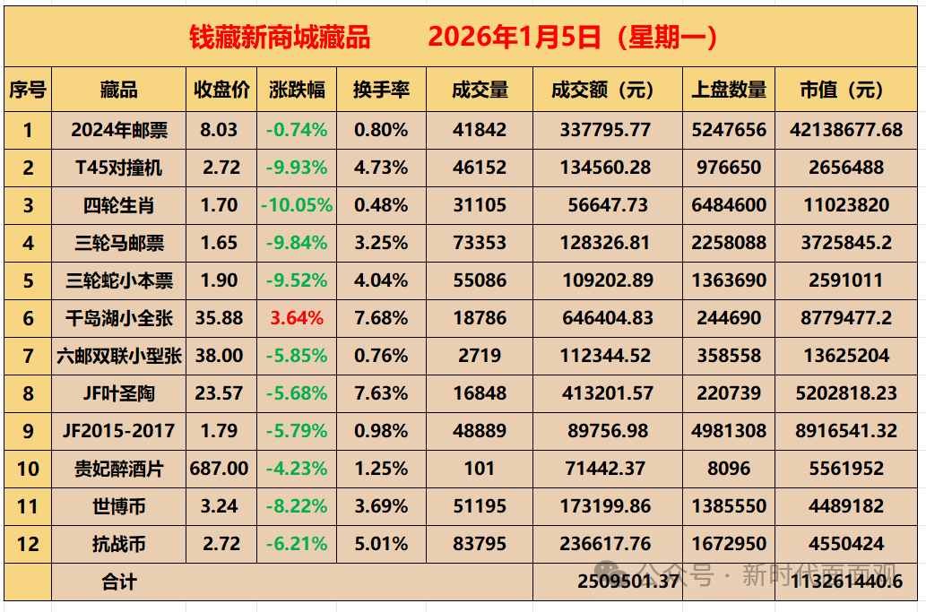 1.2024今日窄幅震荡缩量收小阴线。这也是该票近十个交易日以来首次收阴线。2.千岛湖再创新高。千岛湖今日低开高走,再次创出新高。其他个票普跌。3.新开户福利来了。2025年12月25日至2026年1月31日期间新注册用户,充值≥1000元,且累计成交金额≥ 10000元;可领取价值50元抢购权礼包(每周统计一次并发放,活动期间注册的新用户仅限参与一次);符合条件的会员登录钱藏新商城-我的-我的福利-点击使用。开户选择6699号段(开户链接附后)的朋友可以叠加获得30元现金红包。