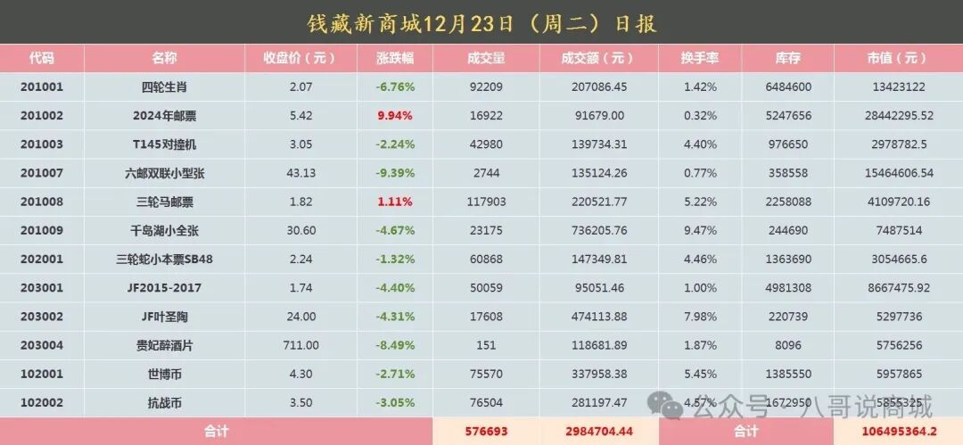 目前投资整体大环境受战争影响都不好,由其邮币卡各商城行情都弱,钱藏大盘无趋势可言,持半仓观望,仓位低的现在可以选好品种做定投分期买入。钱藏近期有望陆续上新品,
