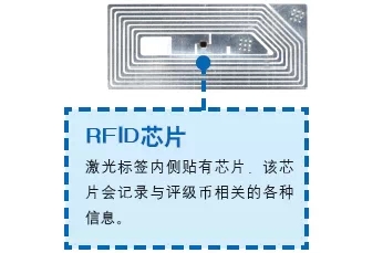 芯片认证——中金国衡首次在业内将RFID芯片认证技术引入钱币评级服务,,借助RFID芯片的编码唯一性及信息加密技术,为评级币创建了电子身份档案,建立了评级和流通追溯体系。同时,芯片为评级币提供了简单、快捷、自助的真伪识别服务。接下来,中金国衡的自助芯片验证终端机将逐步部署在代理商网点以方便客户查询。