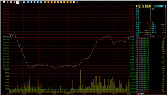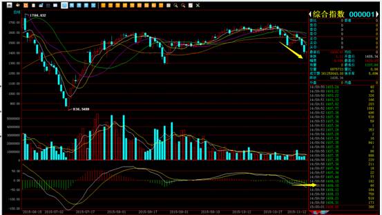 今日南方文交所综合指数开盘1408.34点,最高触及1420.20点,最低下探1337.96点,最终以1409.45点收盘,涨幅0.08%。成交量3.6亿,成交量稍有回升。早上开盘之后仍然开启暴跌模式,盘中跌幅达5%,市场人心溃散,交易也不够活跃,直至下午开盘后,多头才开始发力,逐步收复日内失地,走出V型反转,指数一度翻红。收盘前做了微幅调整,最终以阳线收盘,结束了四连跌。技术面上看,成交量仍不够活跃,均线继续空头发散, MACD运行于0轴下方,但有背离迹象, KDJ指标死叉转下,从K线形态来看,跌势有所减弱,若需扭转向上,仍需多头发力才行。短线上可以适量参与反弹行情,由于上方压力较多,所以还需要控制好仓位和设置好止损位。