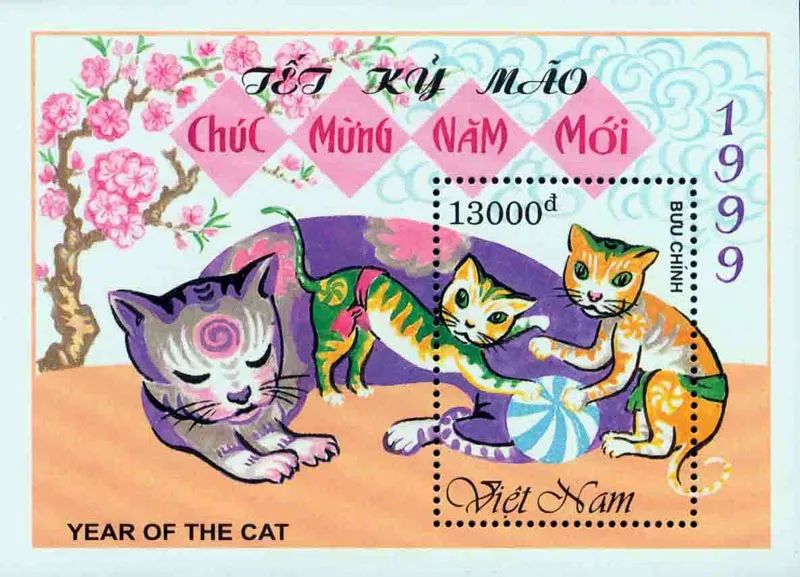 1999年1月6日,越南第二次发行《猫年》生肖邮票,这次猫成为名副其实的主角。
